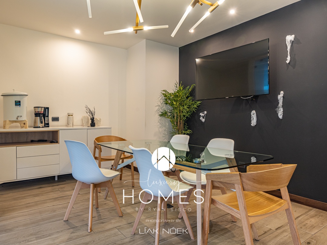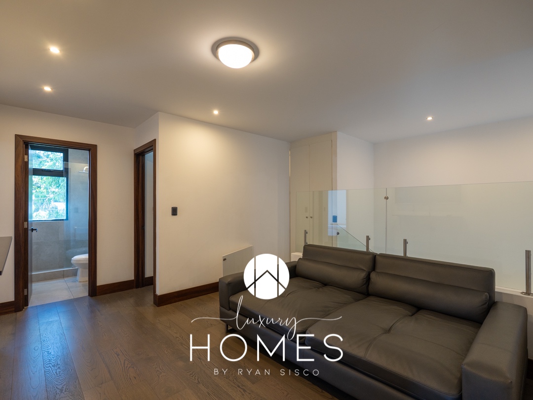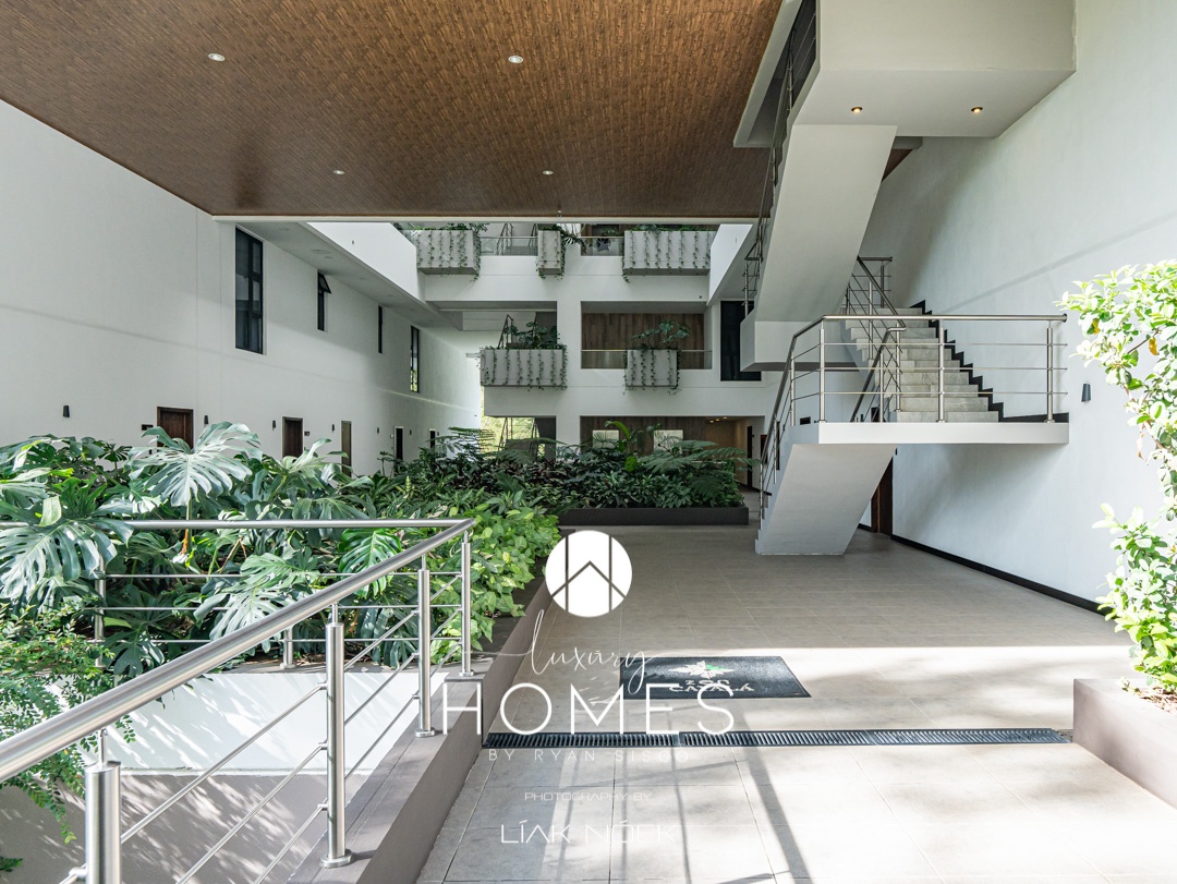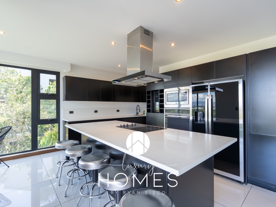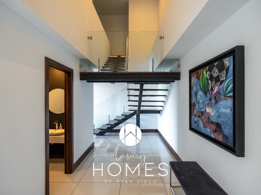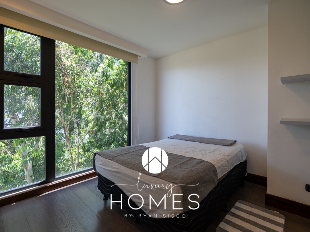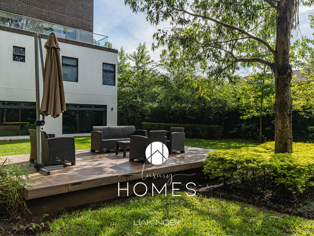 3 dormitorios, 2.5 baños, sala familiar, sala-comedor, terraza con churrasquera, bar y jardín, cocina abierta, lavandería, cuarto de servicio con baño completo y 2 estacionamientos.