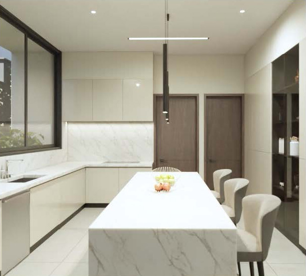 4 dormitorios, 4.5 baños, sala-comedor, estudio/bar, cocina, pergola, BBQ, amplio jardín, sala familiar y estudio/gimnasio. Despensa, lavandería, patio de servicio y cuarto de servicio con baño completo. Estacionamiento techado para 4 vehículos.