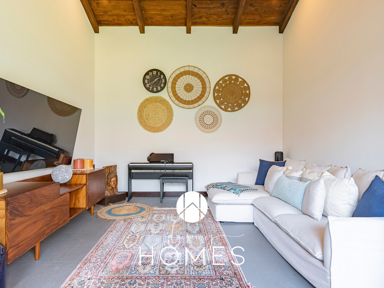 4 dormitorios, 4.5 baños, sala-comedor, cocina, piscina, amplio jardín, pérgola, jacuzzi y sala familiar. Lavandería y cuarto de servicio con baño completo. Estacionamiento techado para 2 vehículos.