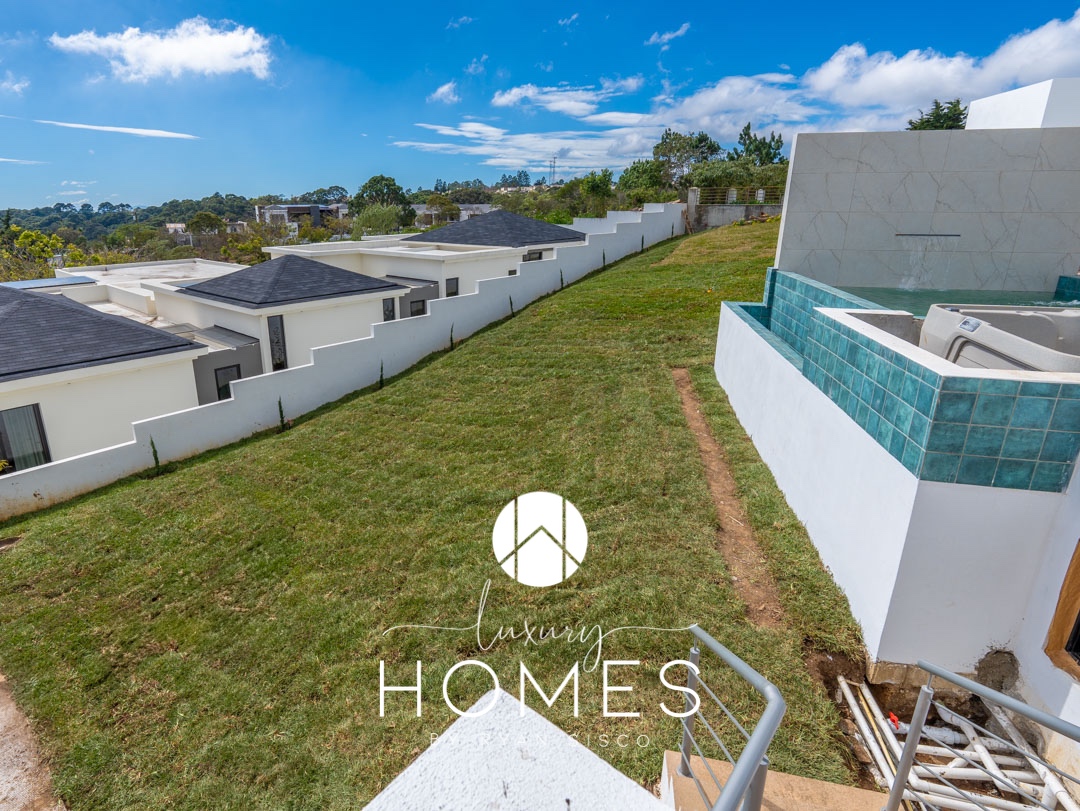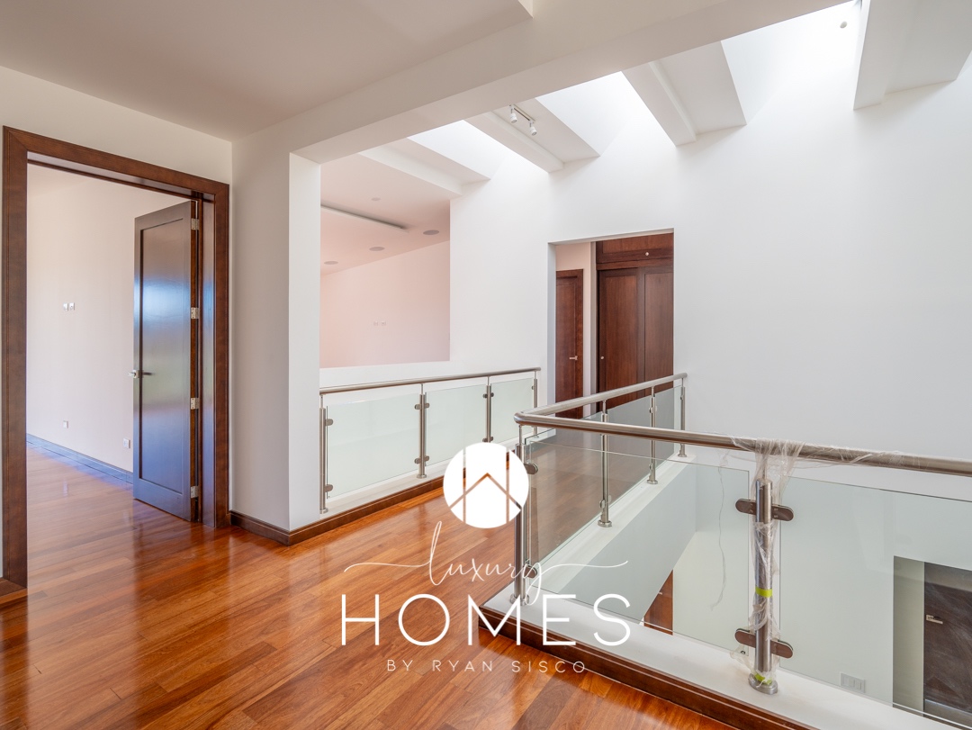 5 dormitorios, 5.5 baños, sala, comedor, cocina, desayunador, sala familiar estudio/gimnasio, cava de vinos, pérgola, piscina, area para asados y jardín. Despensa, Closet de linos, lavandería, baño secundario de servicio, comedor de servicio, cuarto de servicio con baño completo. cuarto de guardianía con baño completo y bodegas. Estacionamiento techado para 4 vehículos y 4 más sin techar.