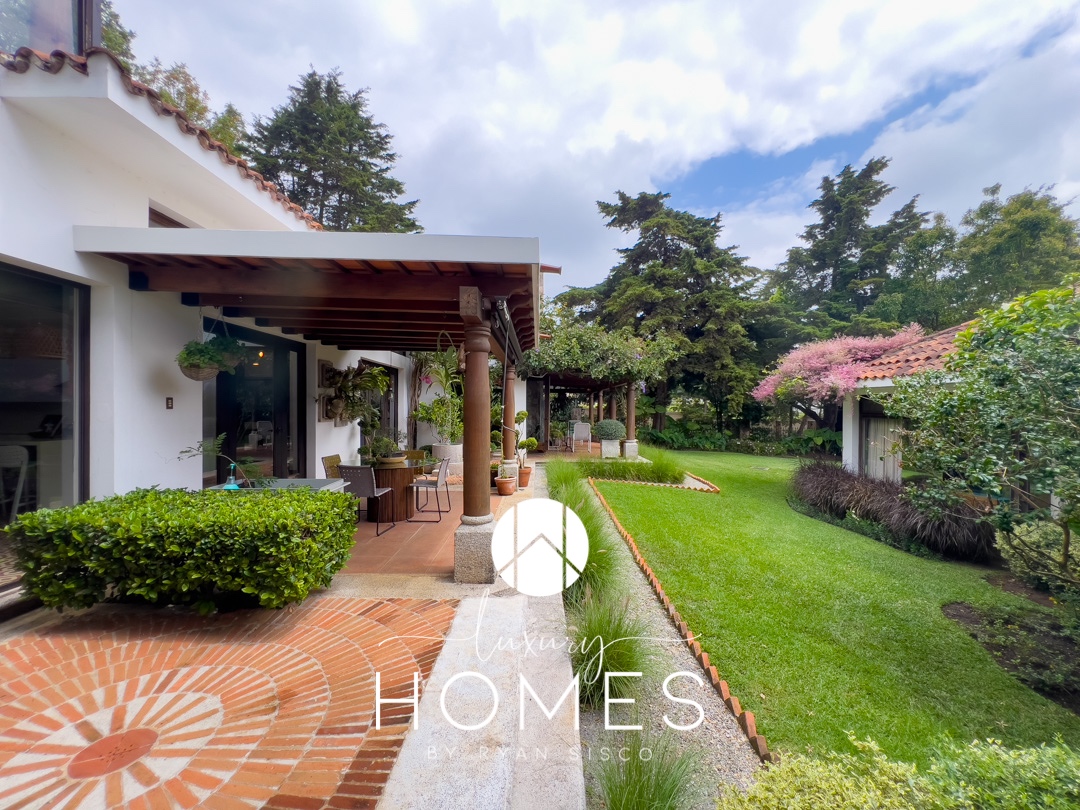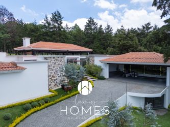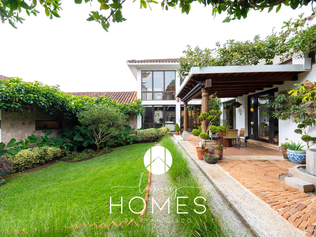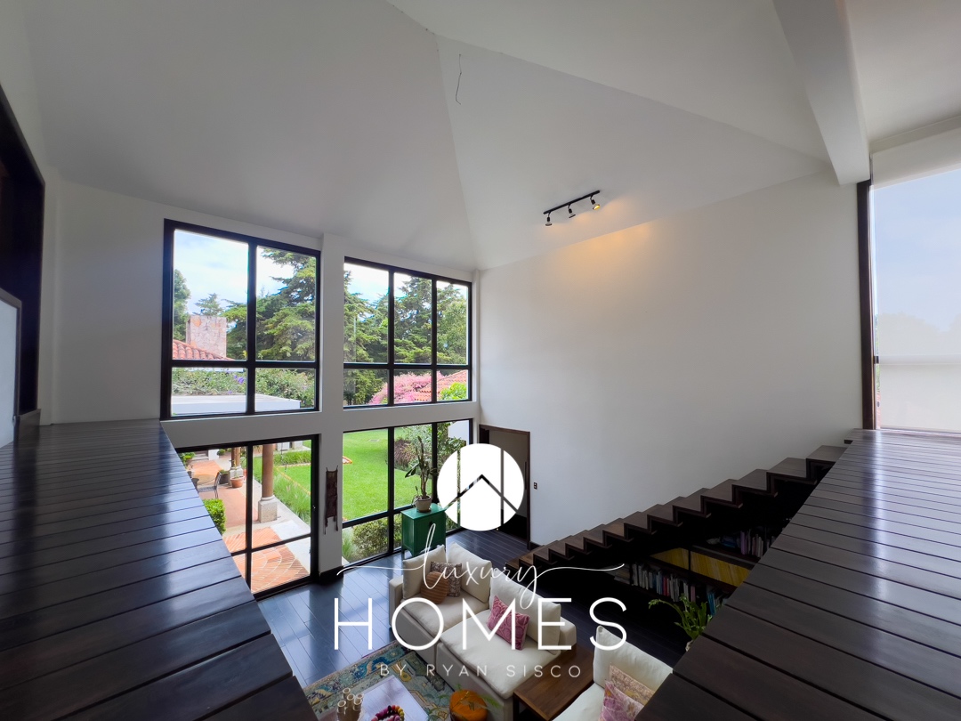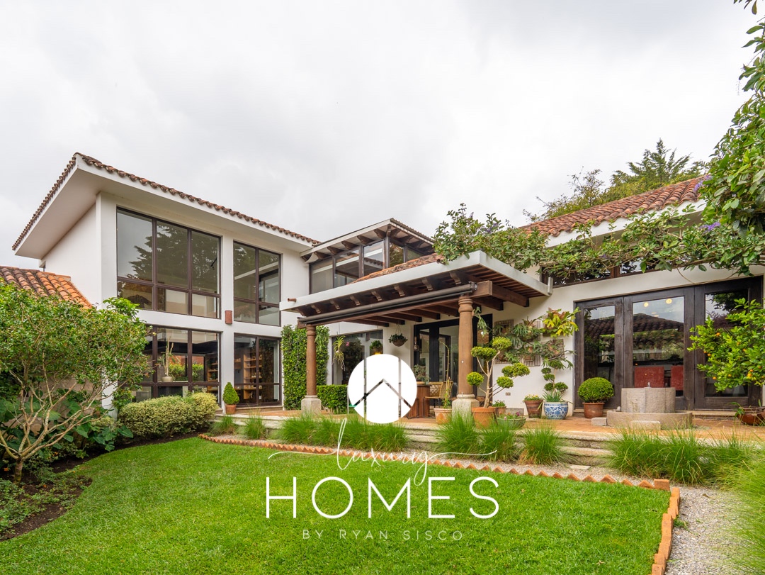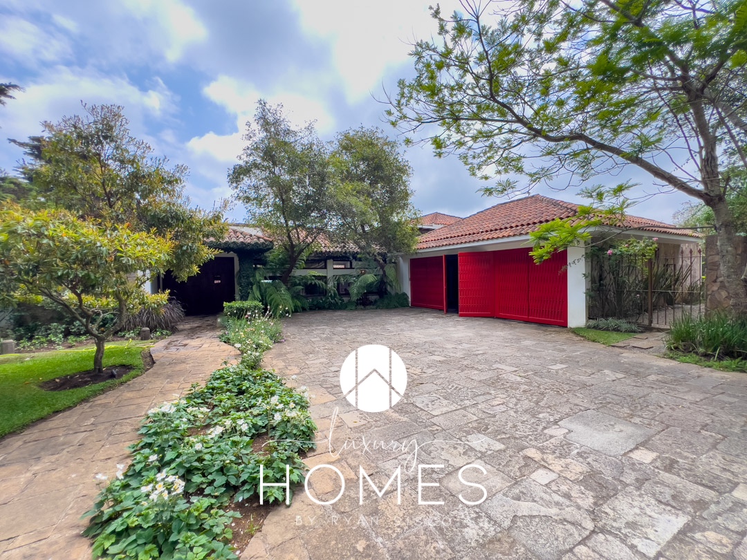 4 dormitorios, 5.5 baños, antesala, sala con chimenea, comedor, cocina, pantry, sala familiar tipo loft, estudio, área para gimnasio, 2 pérgolas, fuente y amplio jardín. Lavandería, cuarto de servicio con baño, cuarto de guardianía y 2 bodegas. Estacionamiento techado para 4 vehículos y 4 más sin techar.