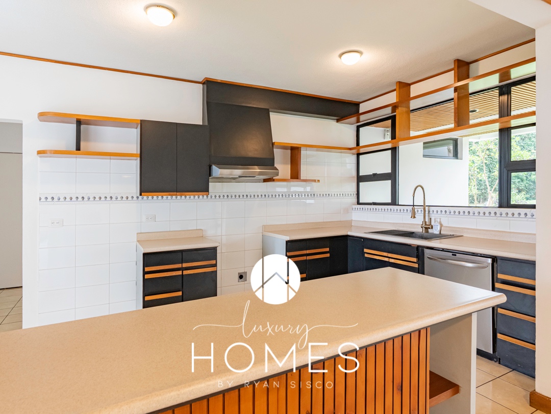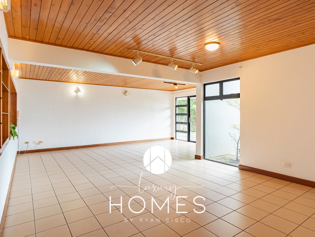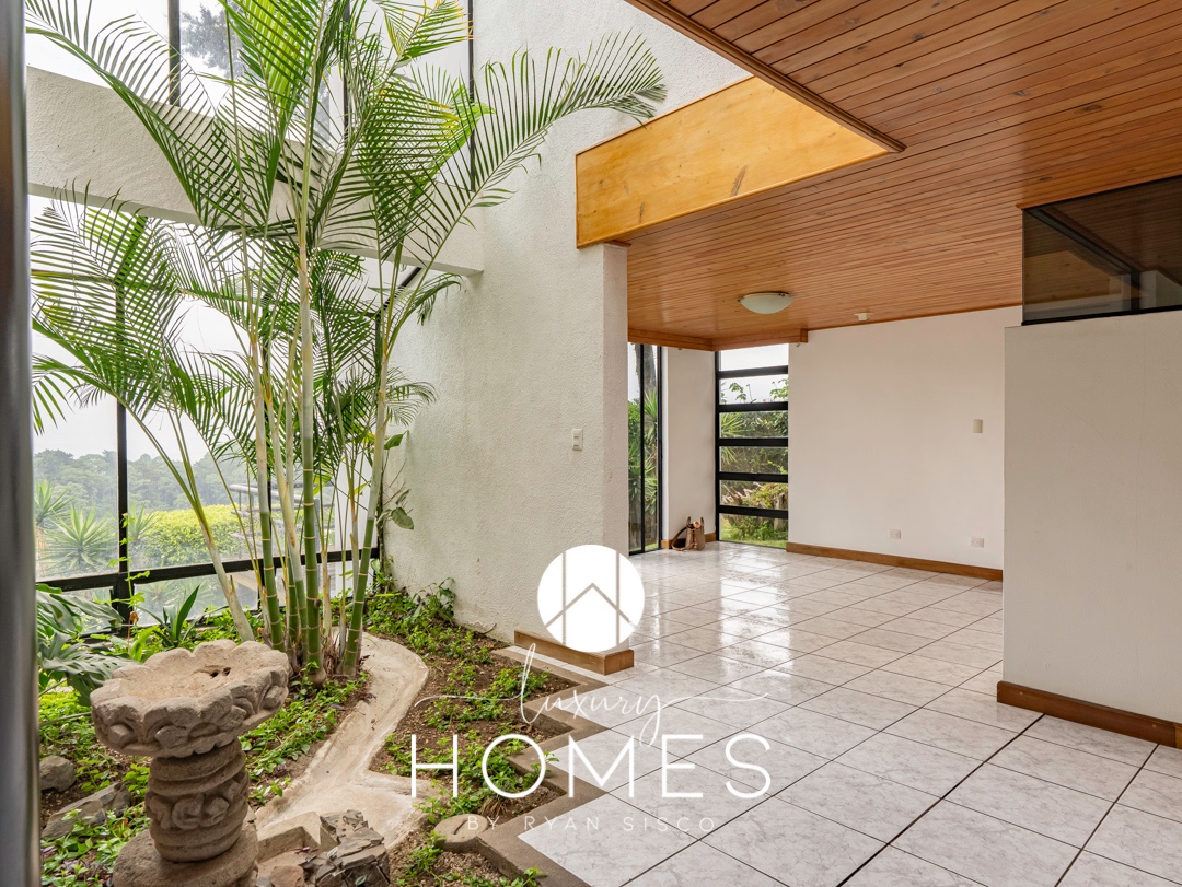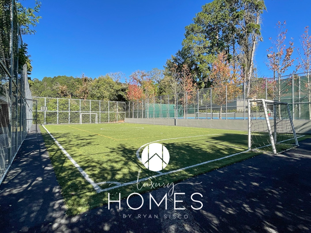 4 dormitorios, 2 baños completos, 2 medios baños, sala con chimenea, comedor, cocina, desayunador, lavandería, cuarto de servicio, jardín amplio con área para juegos, salón para juegos y estacionamiento techado para 3 vehículos, espacio para 8 vehículos más.