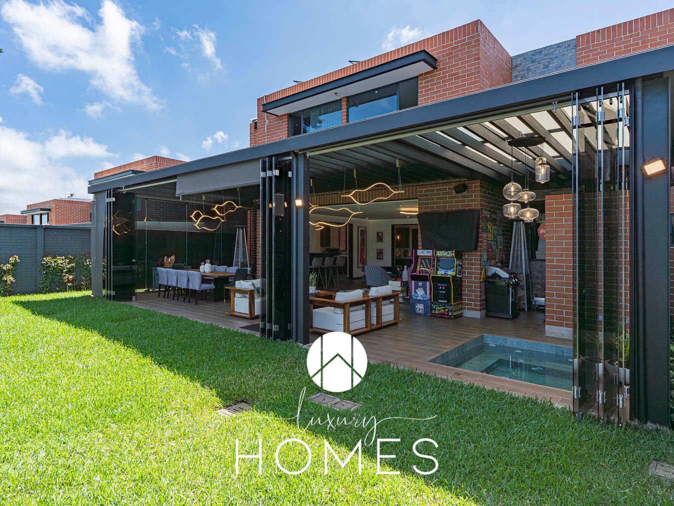 4 dormitorios, 5.5 baños, sala familiar, estudio, sala-comedor, cocina con isla, pantry, jardín con pérgola y jacuzzi. Cuarto de servicio con baño completo, lavandería, baño para jardinero y bodega. Estacionamiento techado para 2 vehículos y 4 más sin techar.