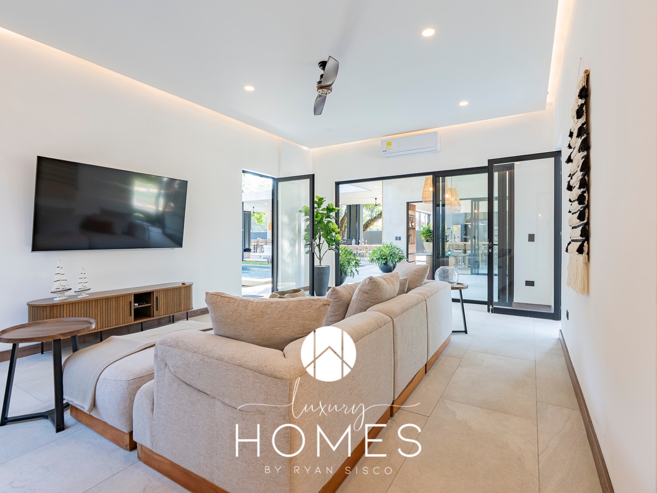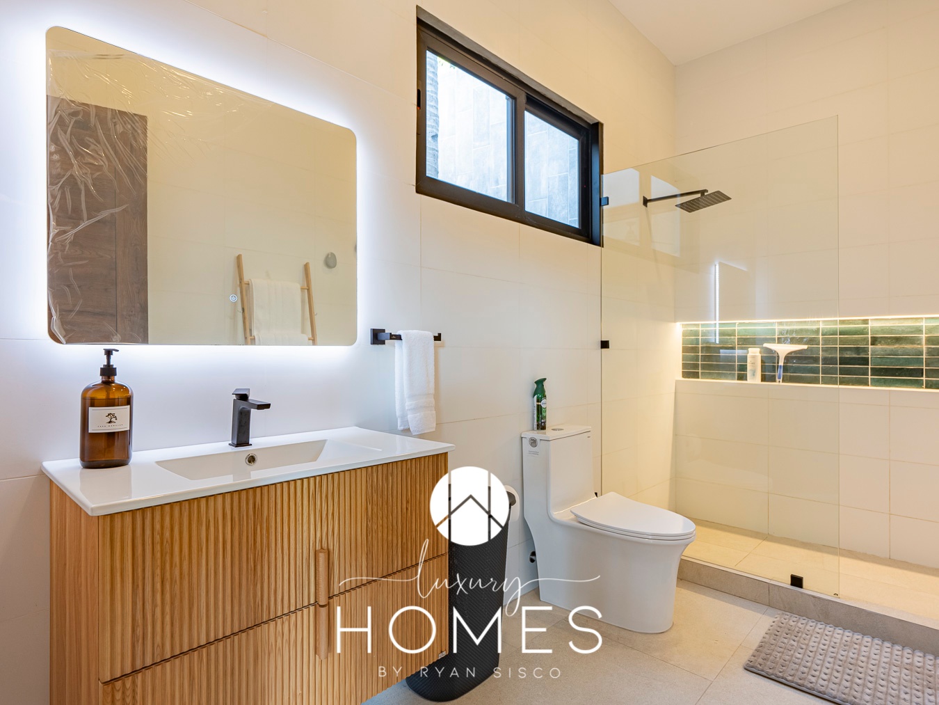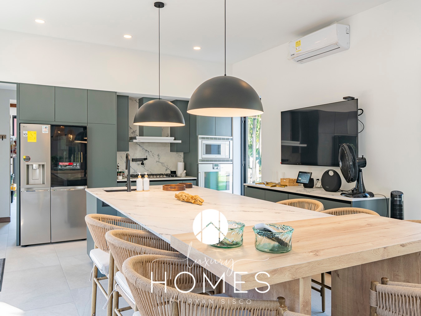5 dormitorios, 5 baños completos, 2 medios baños, sala, comedor, 2 cocinas, sala familiar, jardín, 2 piscinas, jacuzzi, terraza techada y bar. Alacena, lavandería, patio, cuarto de servicio, cuarto de seguridad y 2 bodegas. 6 estacionamientos techados y 2 más sin techar.