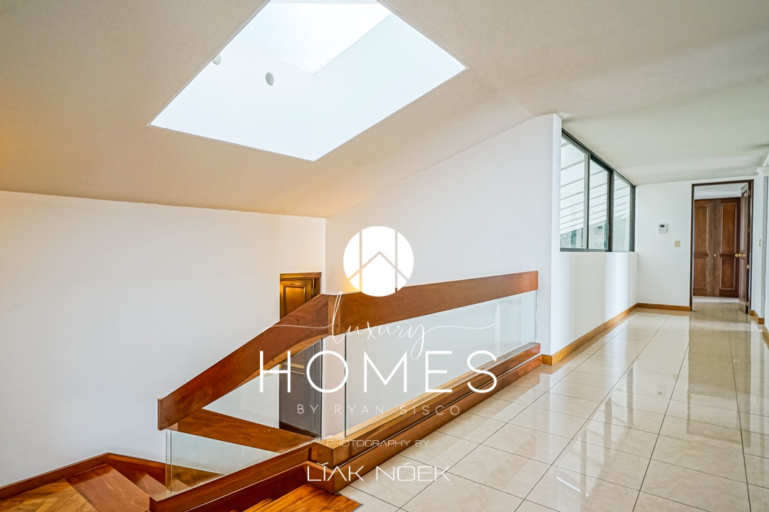 Lindas vistas a la ciudad, 3 dormitorios, 2.5 baños, 2 salas principales, sala familiar, comedor, alacena, cocina remodelada, amplia terraza, jardín, lavandería, cuarto de servicio, patio de servicio, bodega, cuarto para guardián, parqueo para visitas y estacionamiento techado para 3 vehículos. El dormitorio principal cuenta con 2 walk-in closet, gimnasio, baño vestibulado, ducha con sauna y salida a terraza.