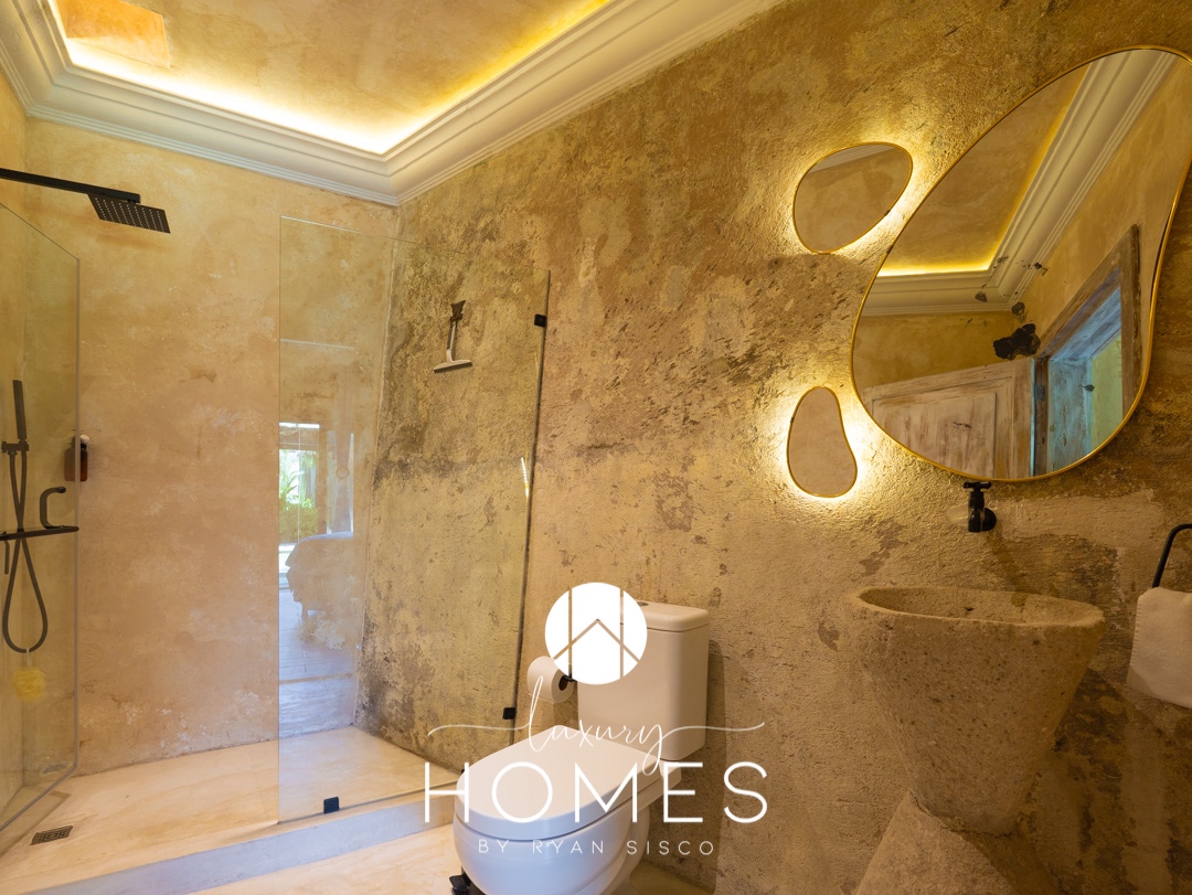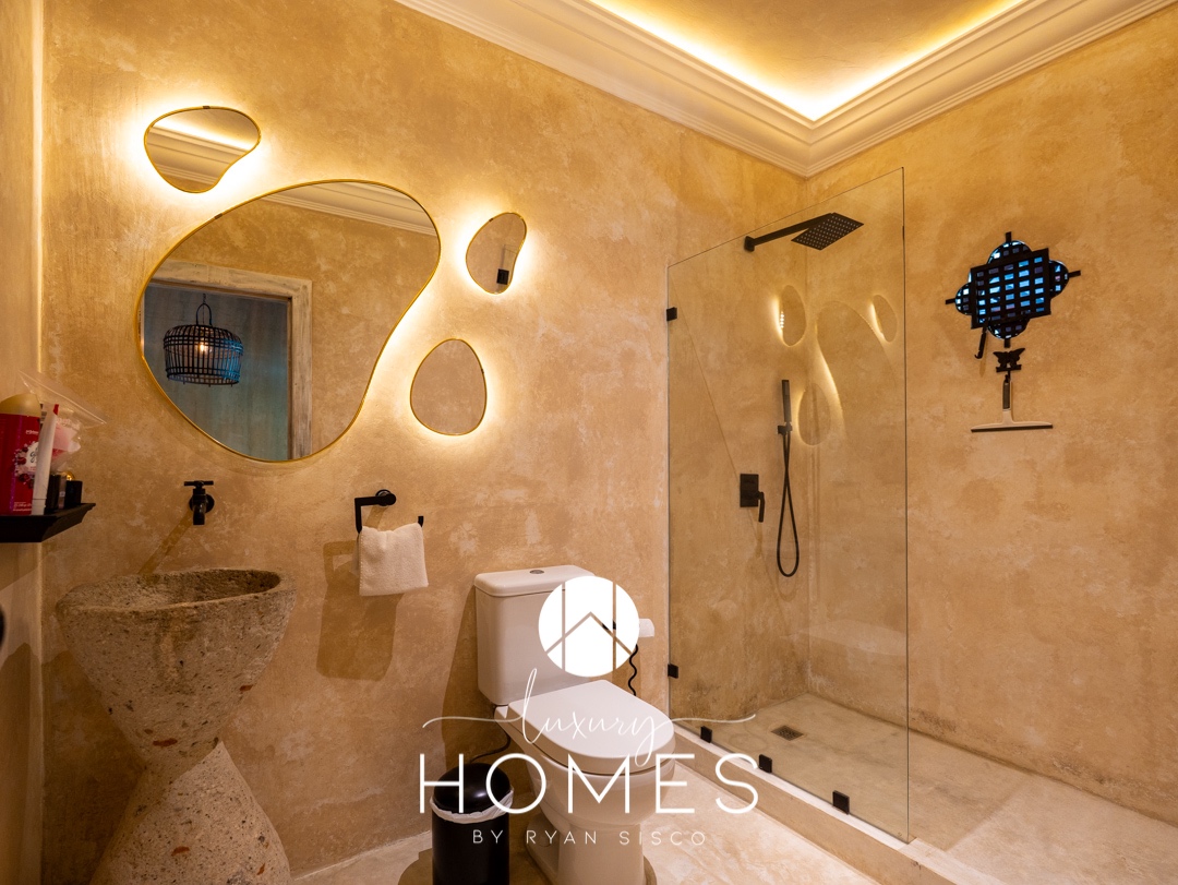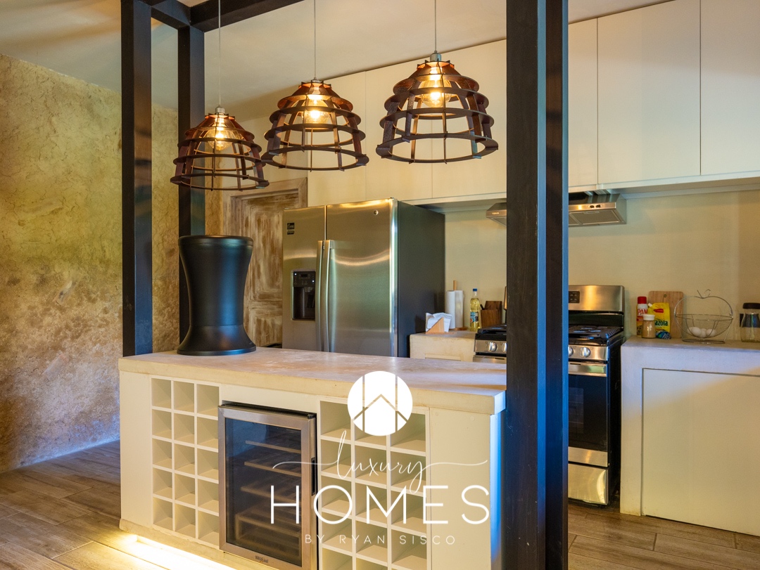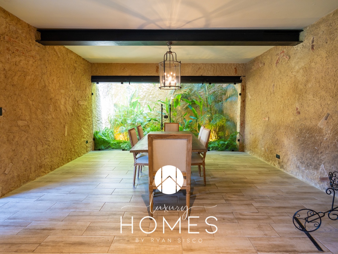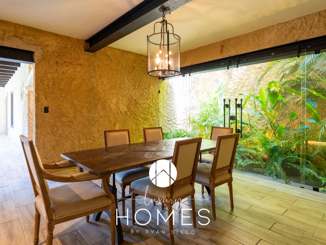 4 dormitorios, 5.5 baños, sala con chimenea, comedor con jardín interior, cocina con isla y cava de vinos, piscina climatizada, sauna húmeda, jardín, amplia terraza, bar, comedor, firepit, churrasquera y jardín iluminado. Alacena, lavandería y bodega. Estacionamiento techado con para 1 vehículo y 2 más sin techar.