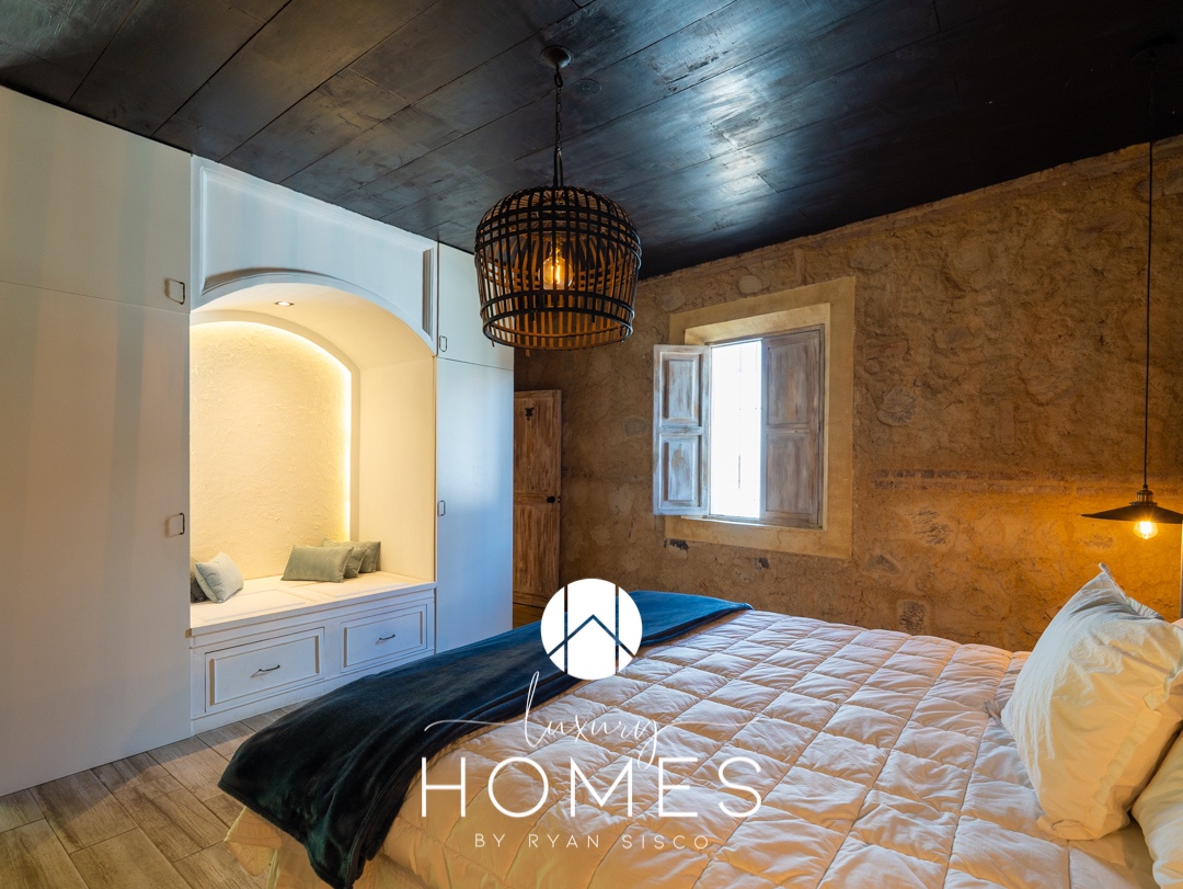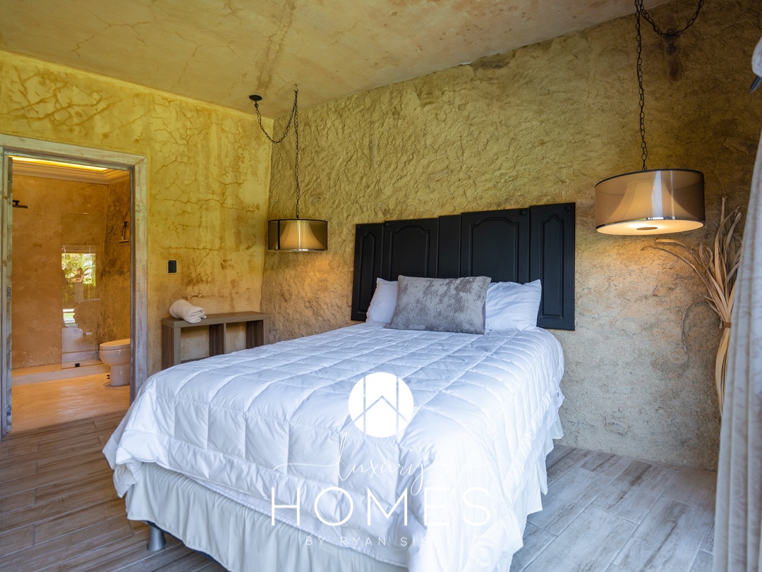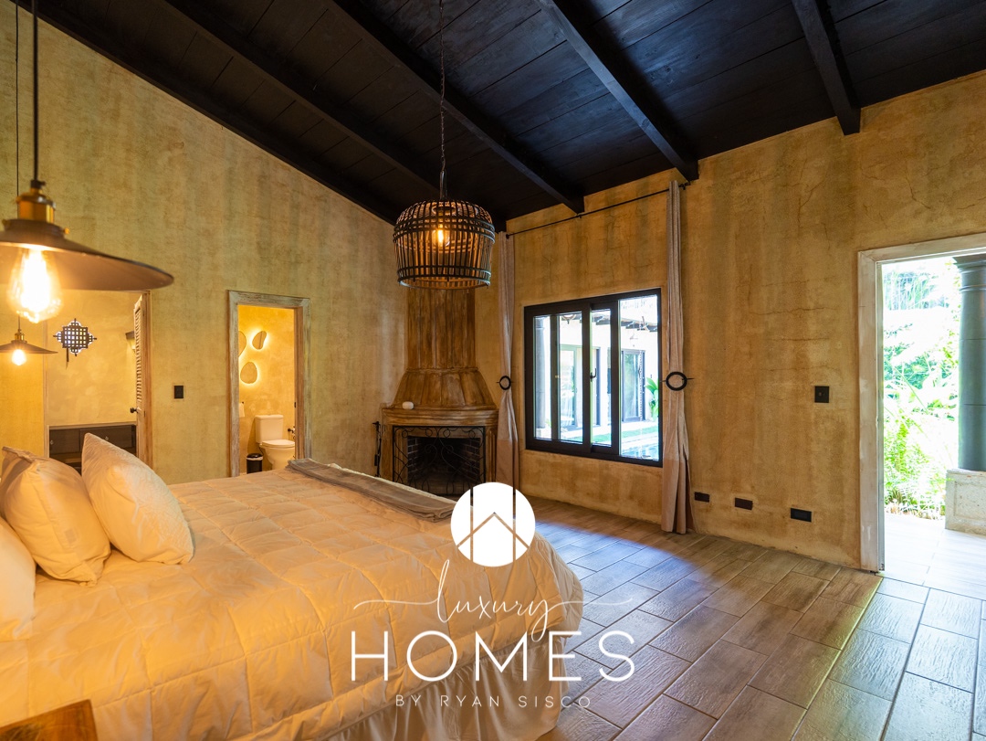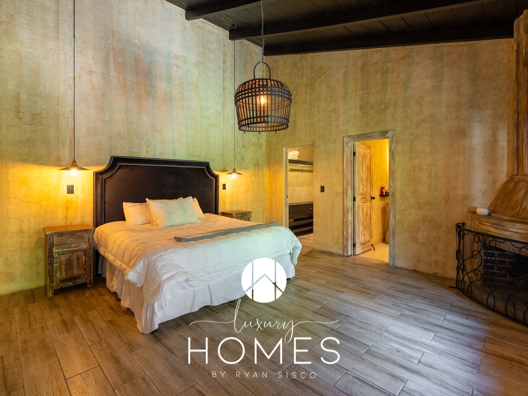 - Dormitorio principal con walk-in closet, baño privado y chimenea