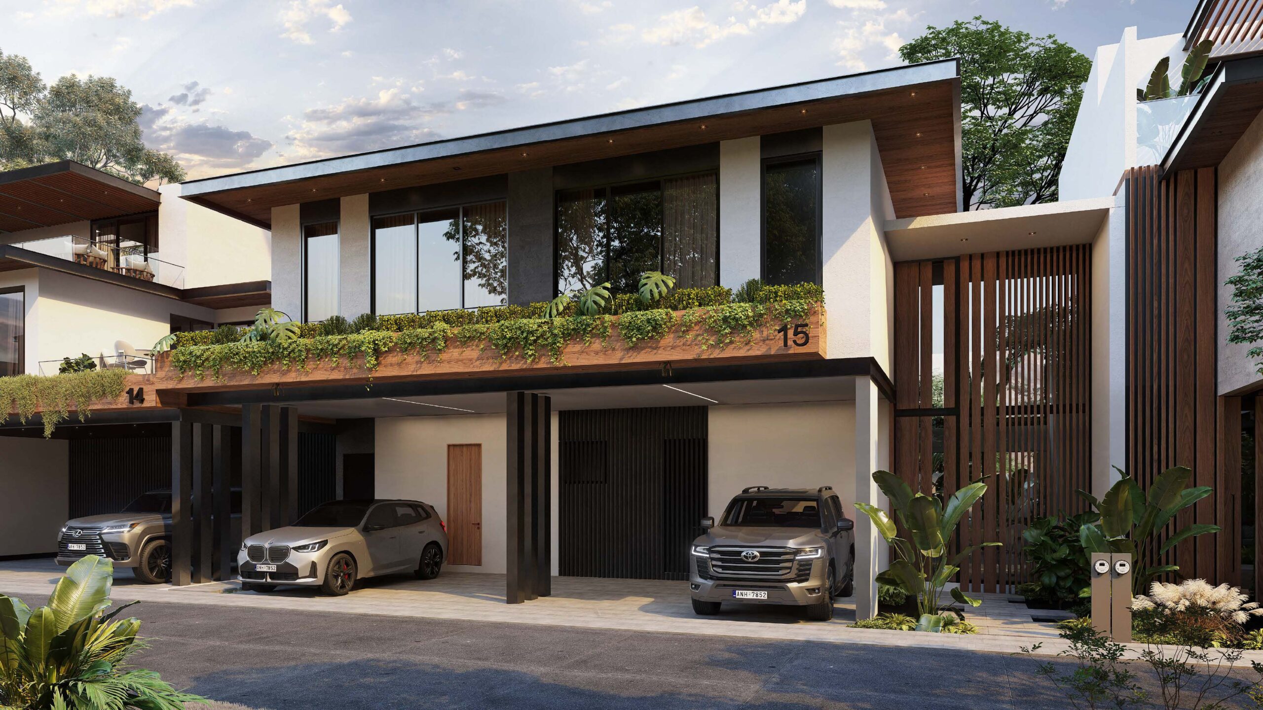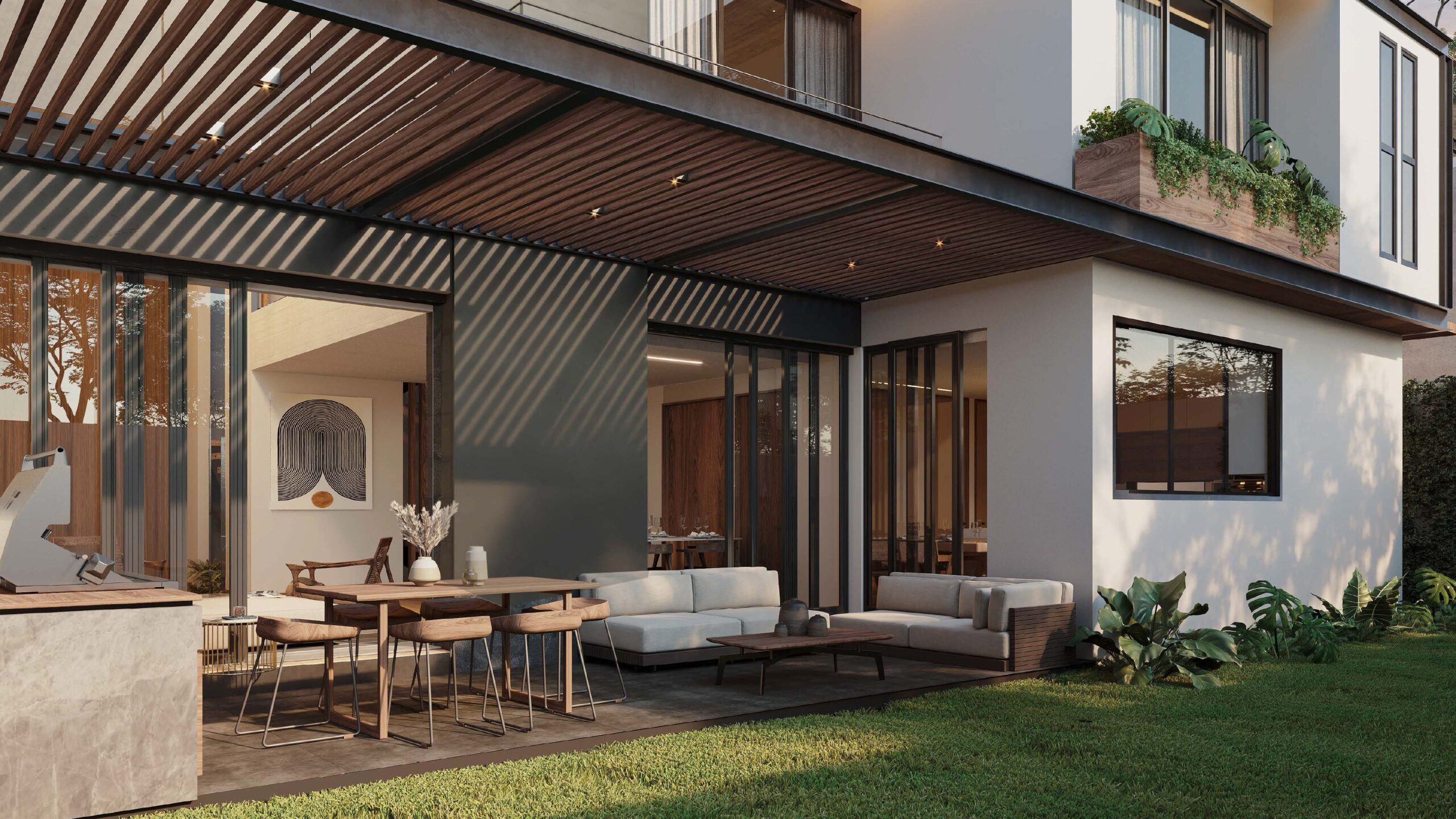 Sala, comedor, baño de visitas, estudio, cocina, despensa, pérgola exterior, habitación de servicio, lavandería, bodega y 5 estacionamientos.