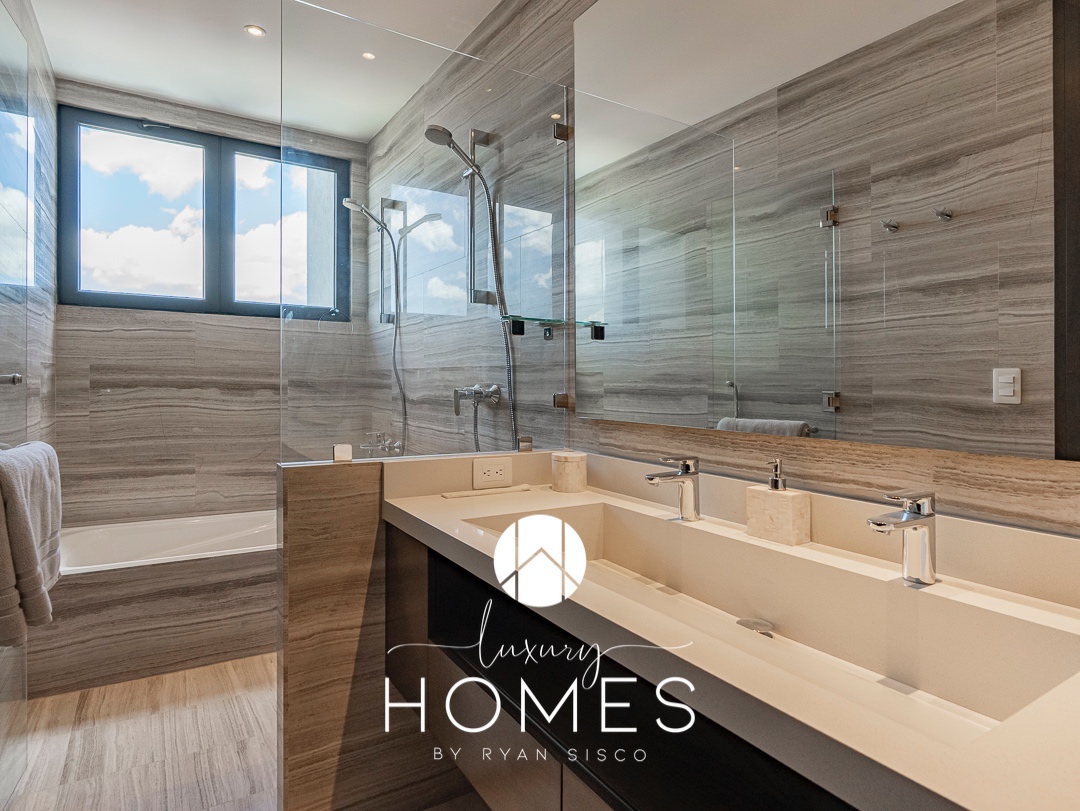 3 dormitorios, 3.5 baños, sala-comedor, cocina, sala familiar, terraza con pérgola, lavandería cuarto de servicio, bodega, 2 estacionamientos. Aire acondicionado central y acabados de lujo y altura interior de más de 3.2 metros.